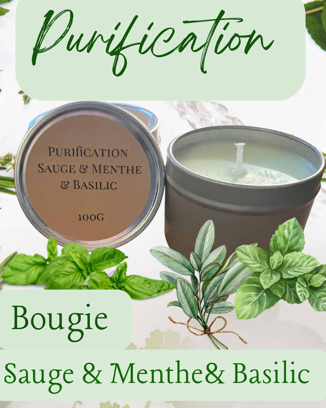 Bougie Sauge Menthe Basilic – L'Envoûtement d'une Pureté Aromatique