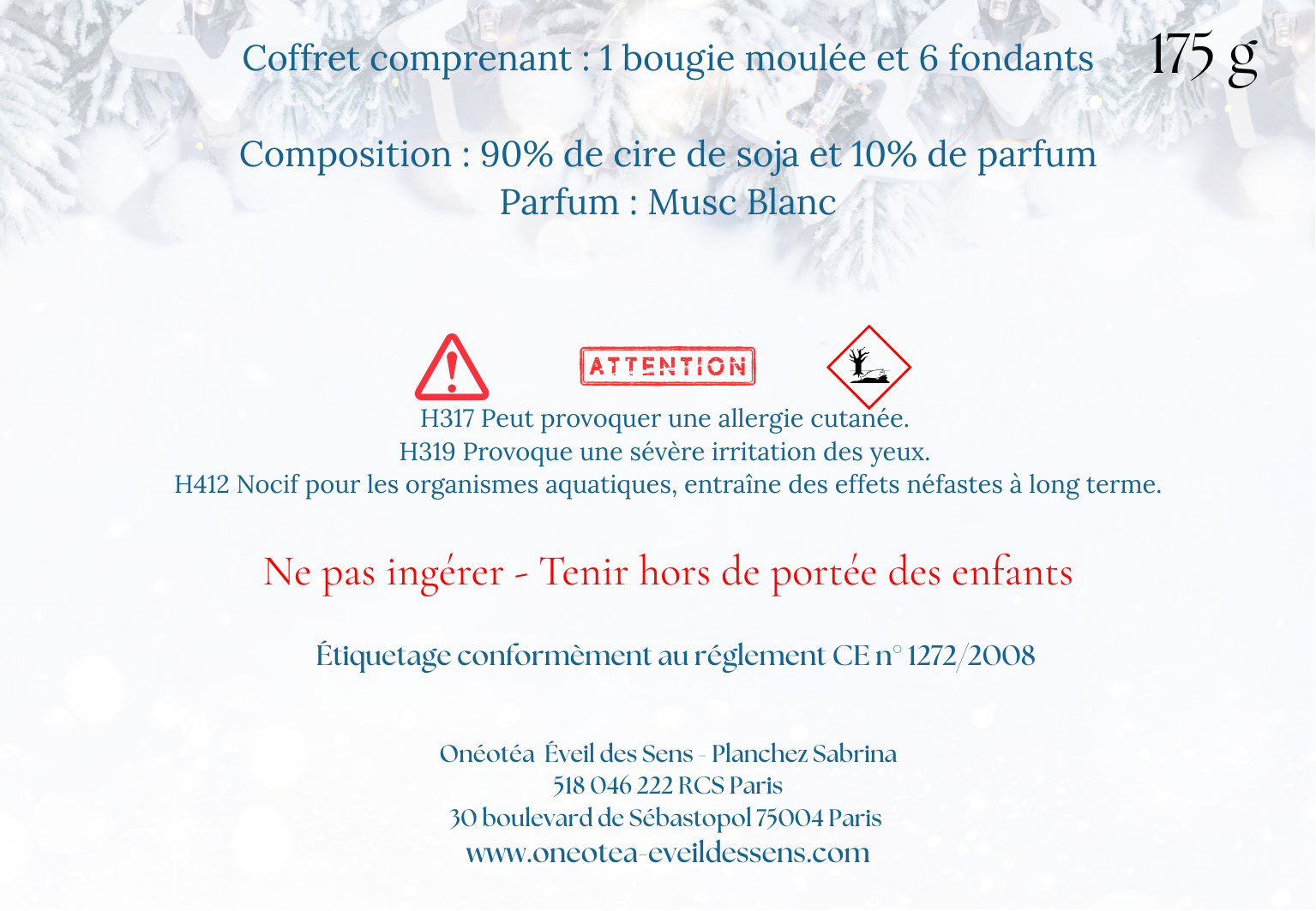 Nos créations de bougies, fondants, brumes sont conformes à la réglementation CLP et AFNOR en vigueur- CE N°1272/2008