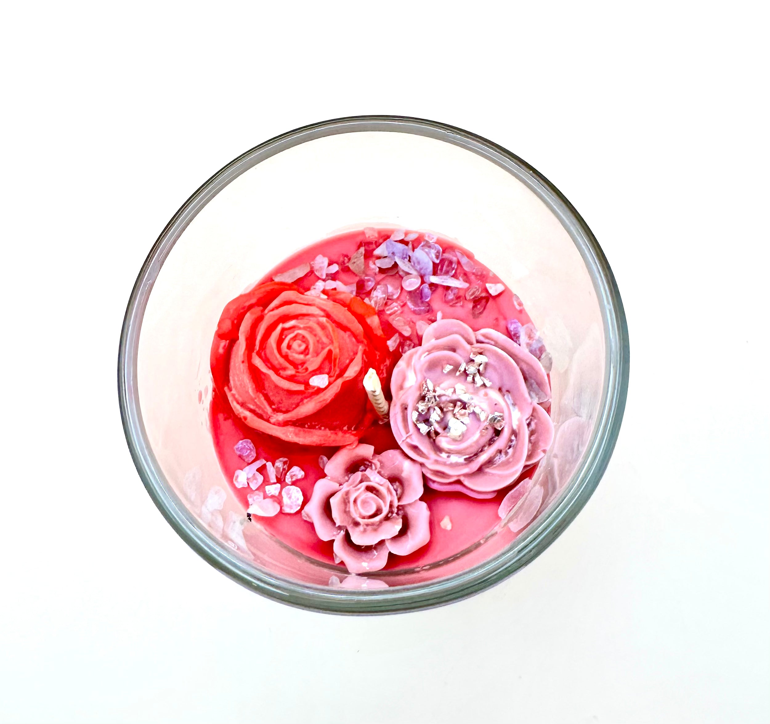 - Chaque bougie contient de la cire de soja 90%, 10% de parfum de Rose sauvage & Rose éternelle